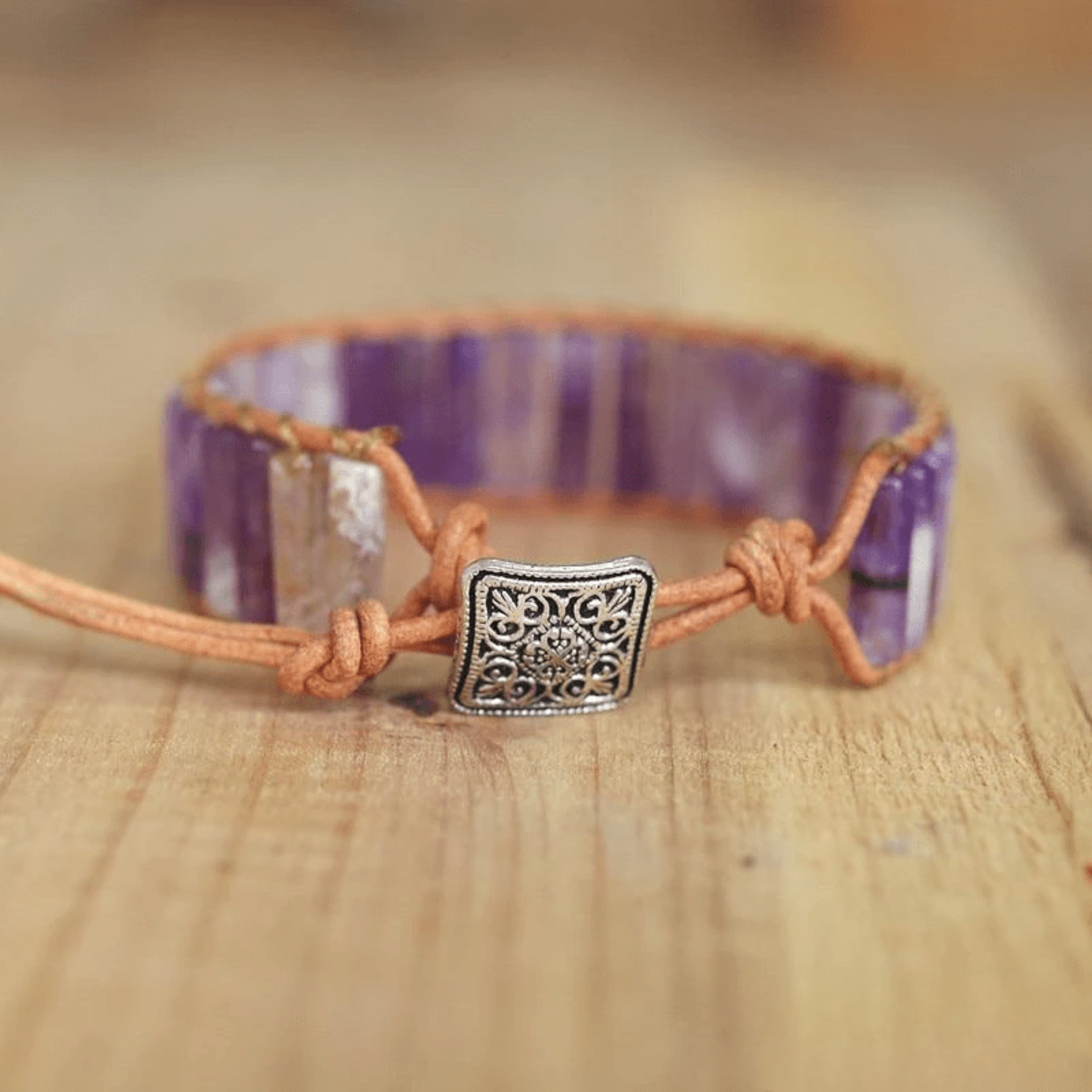 Amethyst is one of the most admired stones for its vivid violet hue and its many benefits. It is believed to support the liver, stomach, teeth, and heart on a physical level, while spiritually promoting peace, calm, and restful sleep. Known to ease anger and anxiety, this bracelet is perfect for anyone seeking serenity in daily life. With its adjustable fit, it is a versatile unisex piece that adapts effortlessly to your style.