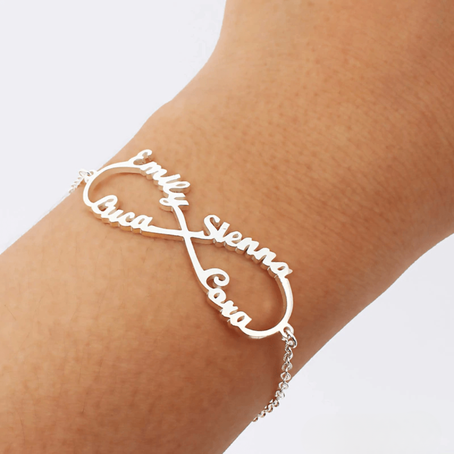 Personalized infinity bracelet with engraved names for eternal love