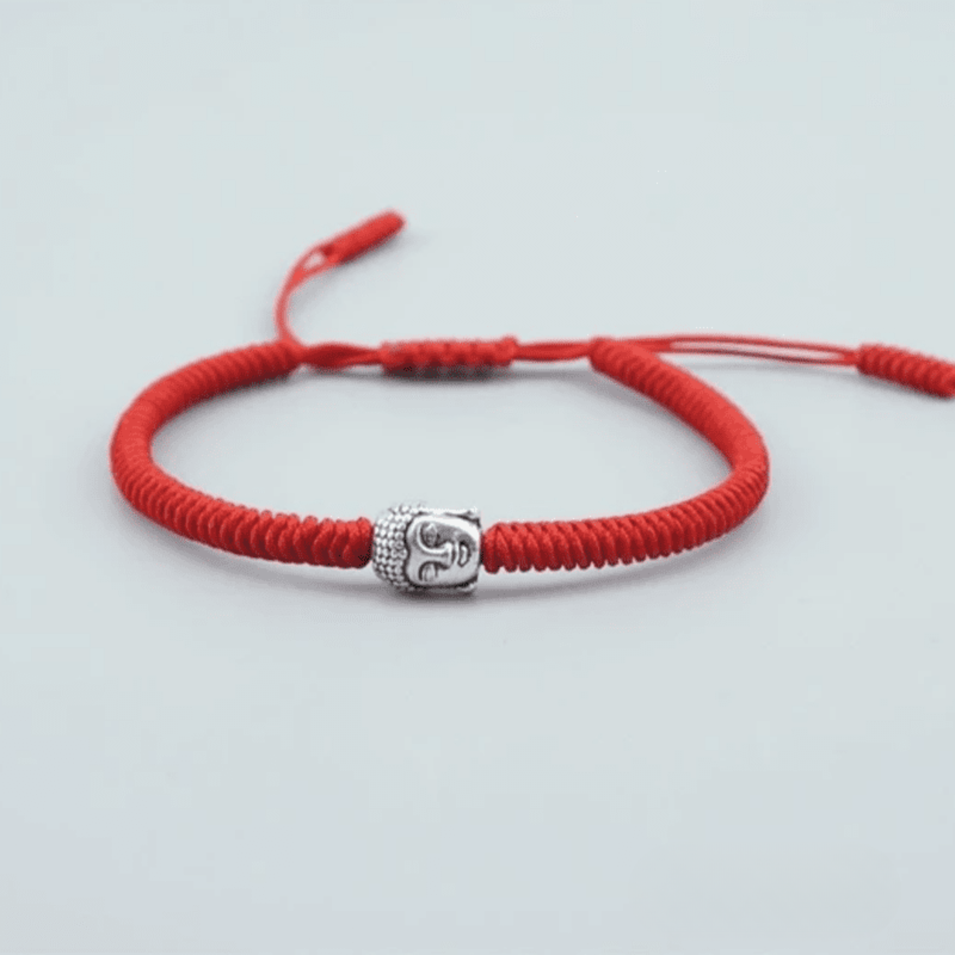 This stunning Tibetan Bracelet in Cord is designed with a silver-tone Buddha head in zinc alloy and a durable hand-woven cord. Its adjustable size ensures a perfect fit for every wrist, making it both comfortable and versatile.